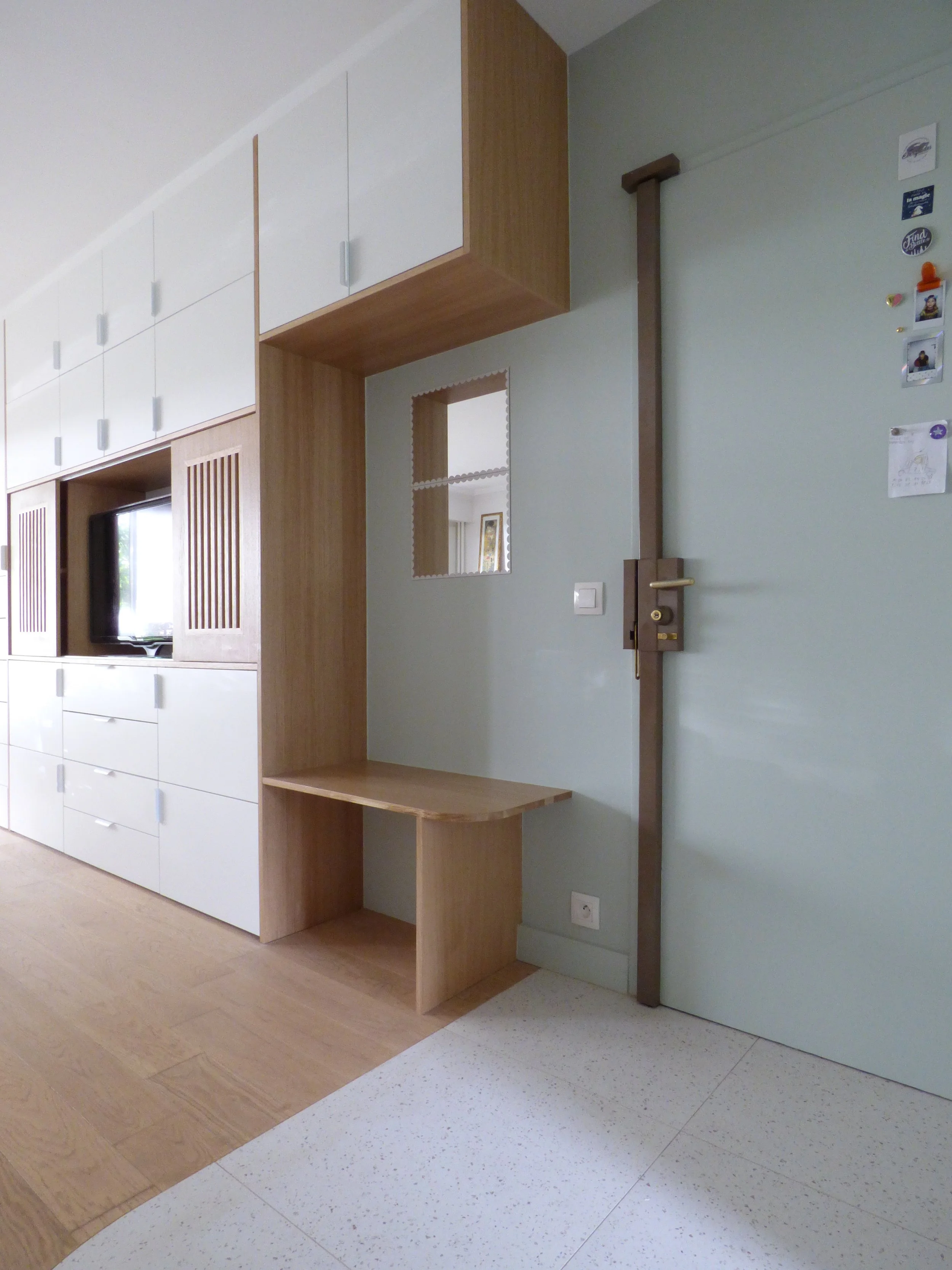 J’ai ainsi complété cette formule afin de vous proposer des modules semi-mesure. Une belle alternative beaucoup plus accessible qui consiste à mixer des modules achetés dans le commerce à du placage en bois naturel, des stratifiés ou encore du médium à peindre qui permettent de nombreuses options de personnalisation.