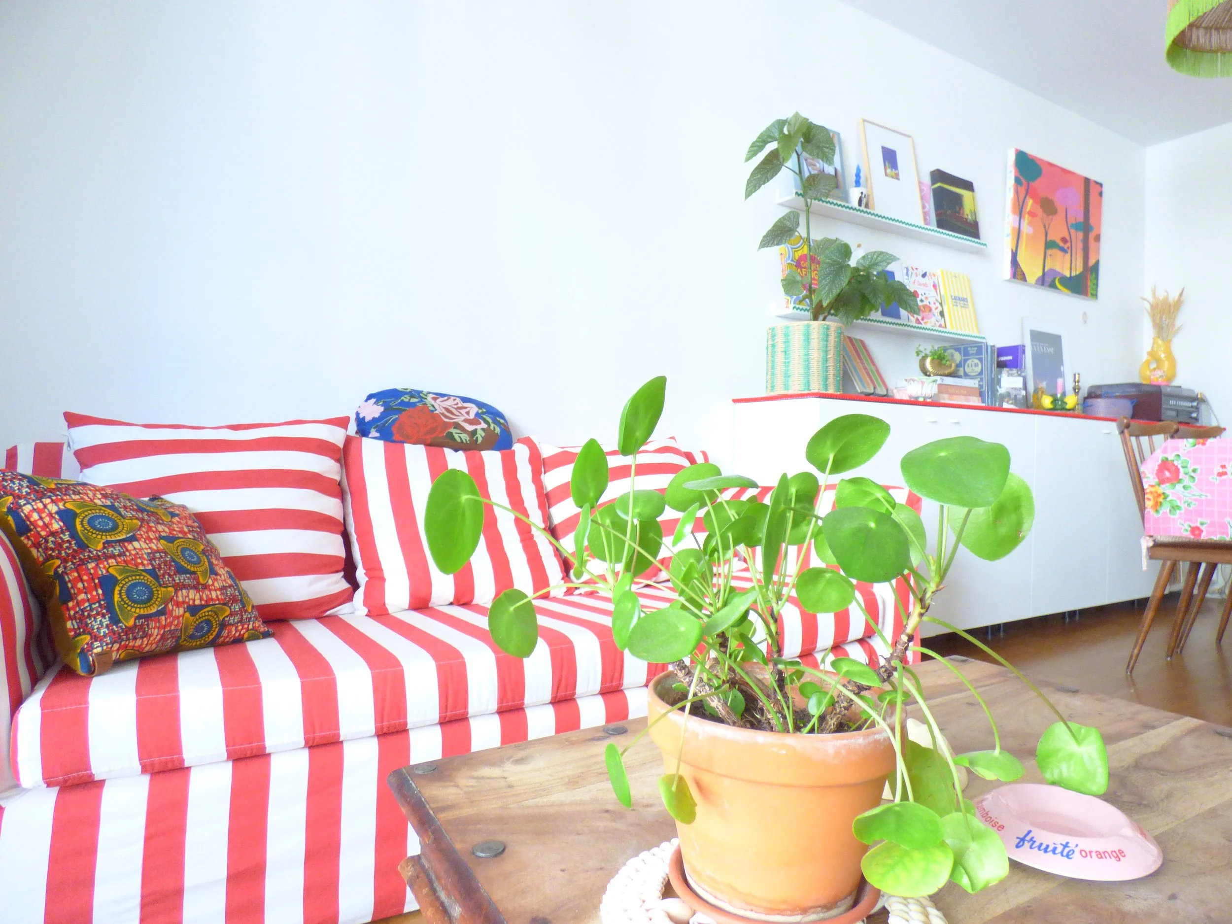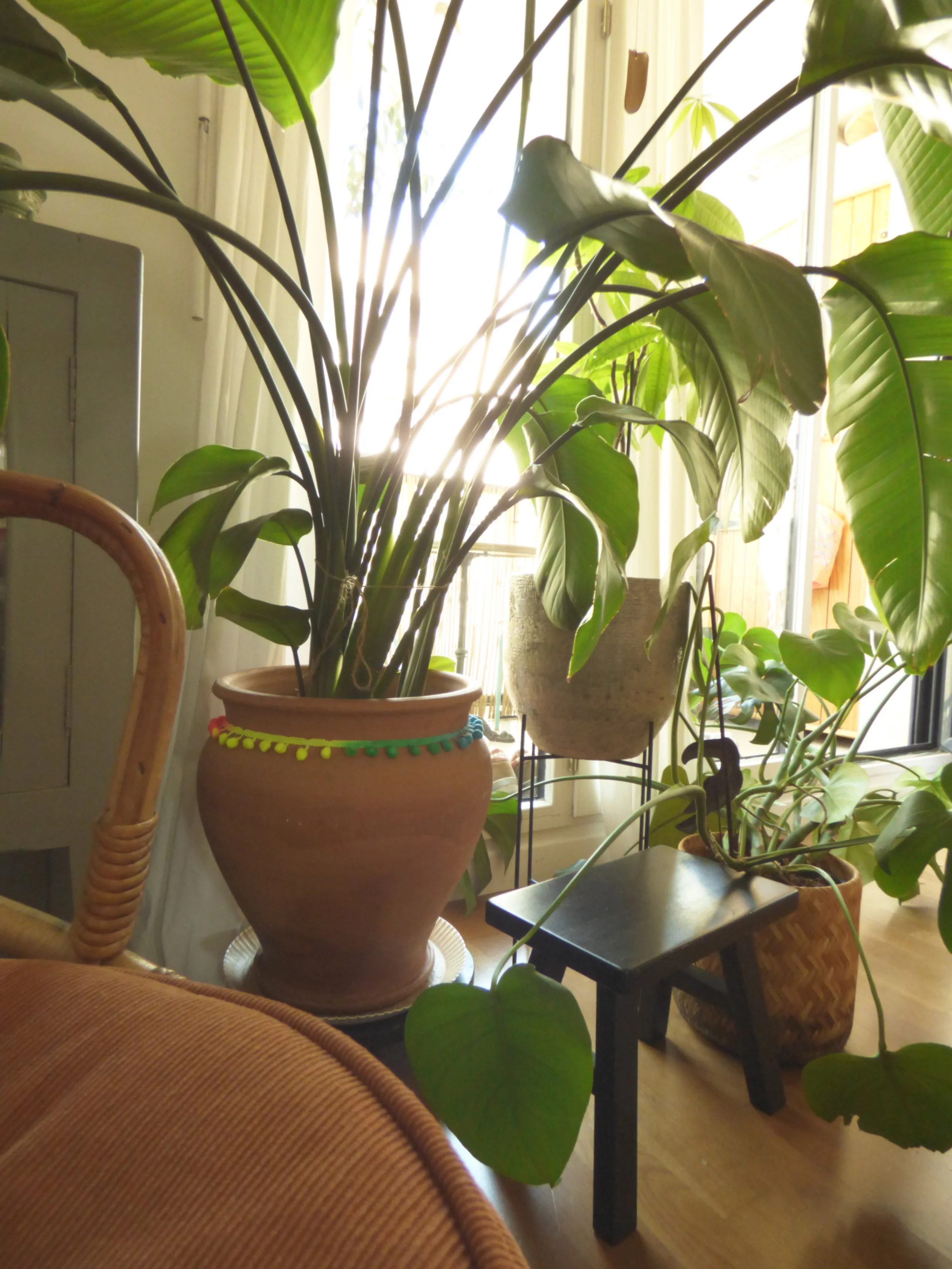Chez nous, les murs se font caméléons pour se fondre avec les envies du moment, les meubles migrent de pièces en pièces et sont parfois relookés, les objets sont détournés, exposés au grès des saisons et des envies, enfin, des plantes vertes, notre passion commune, animent le tout et se font de plus en plus nombreuses d’années en années.